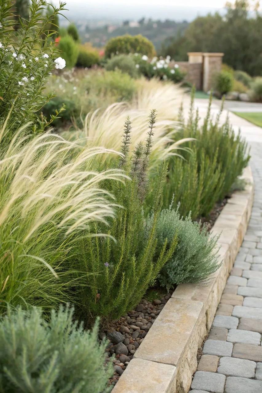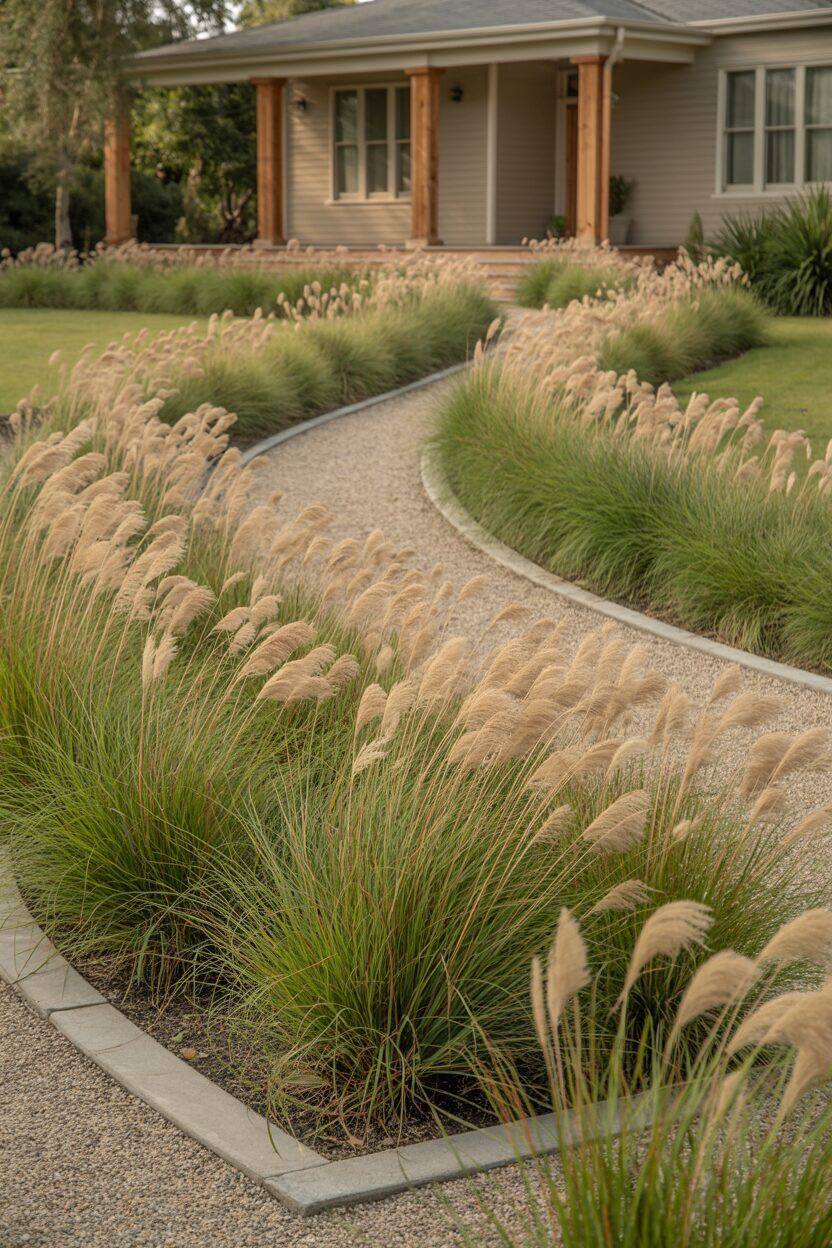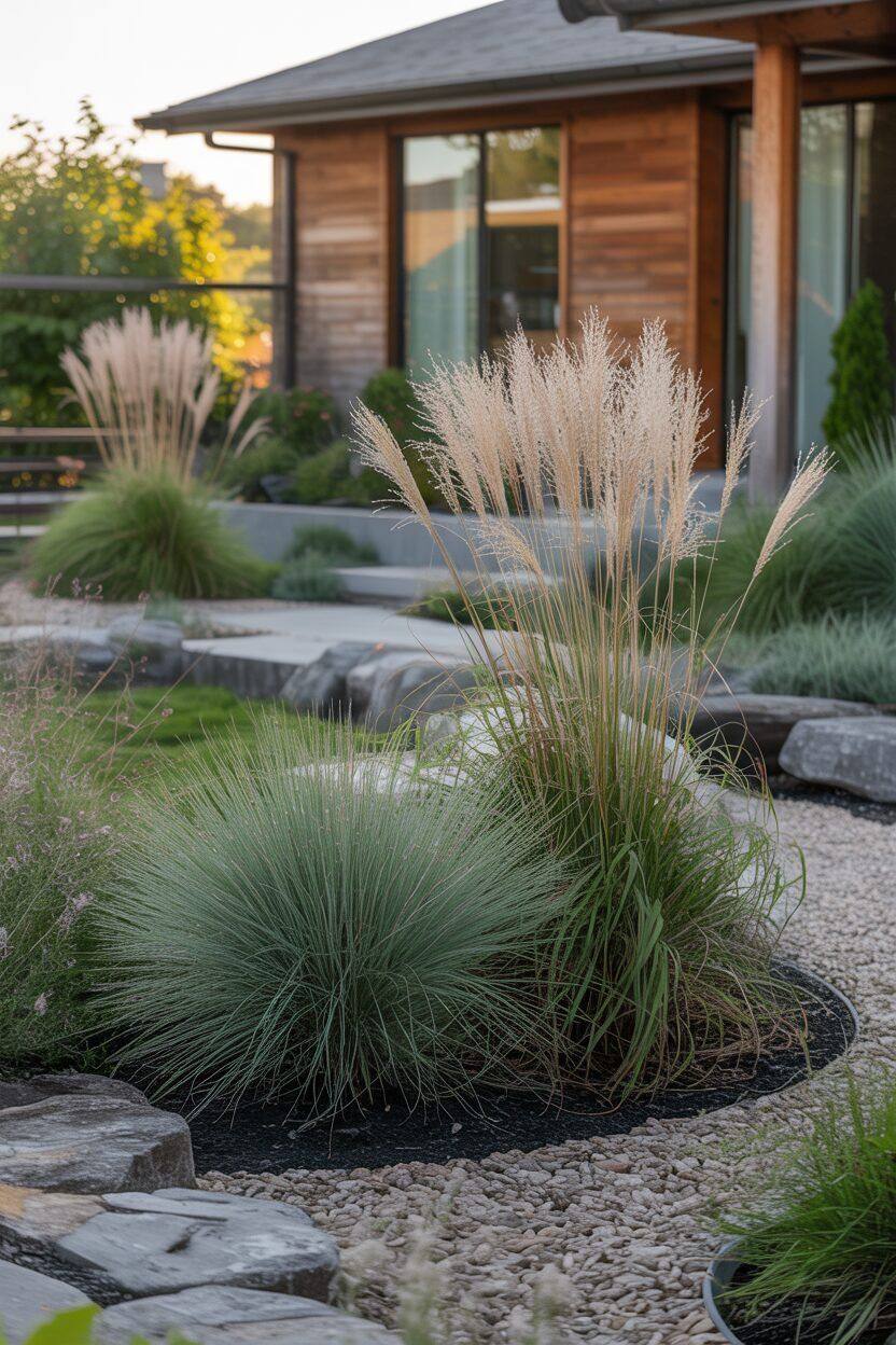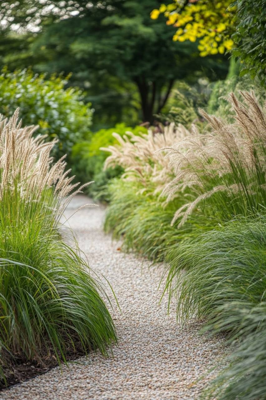 В садах с минимальным уходом злаки фактически заменяют традиционные элементы: складные цветники, бордюры вдоль дорожек и даже часть газона. Именно здесь они открывают свой потенциал как функциональный элемент, а не просто декор.